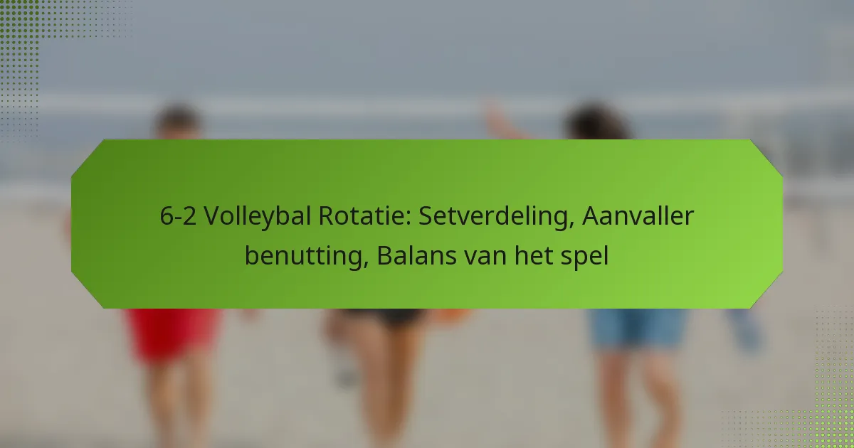 Rotatiestrategieën in de 6-2 volleybalformatie houden in dat spelers door specifieke posities roteren om zowel de aanval als de verdediging te optimaliseren. Deze formatie maakt gebruik van twee setters, wat zorgt voor een dynamischer speelstijl en ervoor zorgt dat er altijd drie aanvallers in de voorste rij zijn.